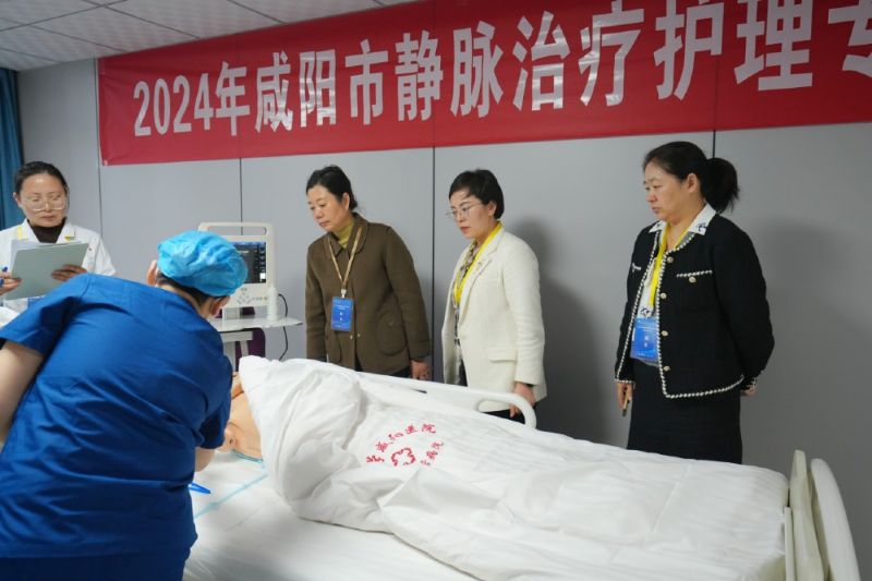 為進(jìn)一步提升我市靜脈治療護(hù)理人員的專業(yè)素養(yǎng),培養(yǎng)具有堅(jiān)實(shí)理論基礎(chǔ)和高水平操作技能的血管通道護(hù)理專業(yè)人才,由咸陽(yáng)市護(hù)理學(xué)會(huì)主辦的“2024年咸陽(yáng)市靜脈治療護(hù)理??萍寄芨?jìng)賽”于11月1日-2日在延安大學(xué)咸陽(yáng)醫(yī)院隆重舉行。來(lái)自咸陽(yáng)市各縣區(qū)13支參賽隊(duì)伍的領(lǐng)隊(duì)、指導(dǎo)老師及參賽選手共計(jì)100余人參加此次活動(dòng)。咸陽(yáng)市衛(wèi)健委醫(yī)政科曹崇??崎L(zhǎng)、咸陽(yáng)市護(hù)理學(xué)會(huì)魚(yú)麗榮理事長(zhǎng)、延安大學(xué)咸陽(yáng)醫(yī)院姚曉峰院長(zhǎng)、咸陽(yáng)市護(hù)理學(xué)會(huì)楊敏副理事長(zhǎng)、何文靜副秘書(shū)長(zhǎng)受邀參加。