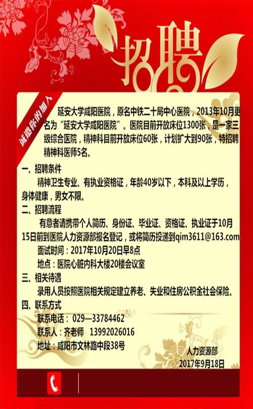 延安大學(xué)咸陽(yáng)醫(yī)院精神科醫(yī)師招聘啟示