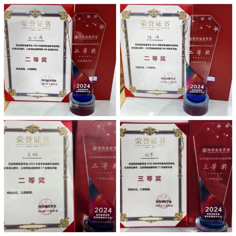 在青年技師演講大賽環(huán)節(jié),我院青年技師代表隊(duì)?wèi){借扎實(shí)的專(zhuān)業(yè)知識(shí)、清晰的演講邏輯和出色的現(xiàn)場(chǎng)表現(xiàn),從眾多參賽者中脫穎而出,最終四人載譽(yù)而歸。其中白江濤、陳浩榮獲MR影像技術(shù)組二等獎(jiǎng),呂琳榮獲CT影像技術(shù)組二等獎(jiǎng),劉芳榮獲CT影像技術(shù)組三等獎(jiǎng)。此次學(xué)術(shù)盛會(huì),他們用專(zhuān)業(yè)的知識(shí)與扎實(shí)的基礎(chǔ)展現(xiàn)了我院醫(yī)學(xué)影像技術(shù)團(tuán)隊(duì)的專(zhuān)業(yè)實(shí)力和青春風(fēng)采,不僅為醫(yī)院及影像科贏得了榮譽(yù),為我院在陜西影像技術(shù)界贏得了口碑,更為我省醫(yī)學(xué)影像技術(shù)的發(fā)展注入了新的活力。