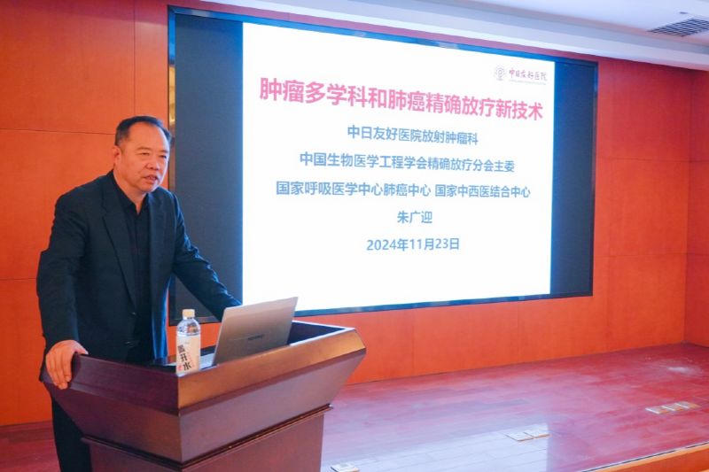 本次學(xué)術(shù)講座由放療科張楊勇副主任主持。腫瘤病院巨濤院長(zhǎng)發(fā)表了熱情洋溢的致辭,他對(duì)朱廣迎教授和王運(yùn)來(lái)教授的到來(lái)表達(dá)了誠(chéng)摯的謝意和熱烈的歡迎,同時(shí)出席本次學(xué)術(shù)講座的有咸陽(yáng)市中心醫(yī)院楊有文教授,西藏民族大學(xué)附屬醫(yī)院廖和和教授、君蘭醫(yī)療華醫(yī)腫瘤集團(tuán)董事長(zhǎng)孫存照先生、君蘭醫(yī)療華醫(yī)腫瘤集團(tuán)程鵬飛經(jīng)理、延安大學(xué)咸陽(yáng)醫(yī)院腫瘤放療科(兼)腫瘤胸外科苗滿園主任、腫瘤胸外科李偉副主任、腫瘤內(nèi)科一病區(qū)的殷國(guó)慶主任、腫瘤內(nèi)科二病區(qū)王忠副主任、呼吸重癥醫(yī)學(xué)科賈建厚教授、放射科CT/MRI室張濤副主任及相關(guān)科室40余人參加了現(xiàn)場(chǎng)會(huì)議。