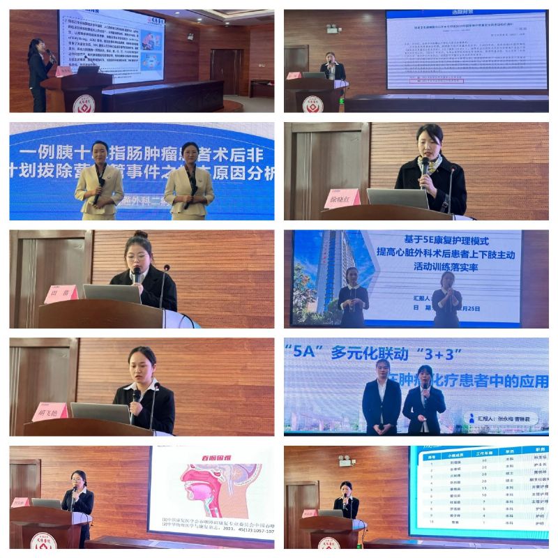 匯報(bào)現(xiàn)場(chǎng)邀請(qǐng)延安大學(xué)咸陽(yáng)醫(yī)院楊敏院長(zhǎng)助理、巨濤院長(zhǎng)助理、科研教學(xué)管理中心陳青副主任、醫(yī)務(wù)部石茹副部長(zhǎng)、質(zhì)量控制辦公室肖靜副主任、感染控制辦公室劉娜主管、腦血管病院宋春蘭總護(hù)士長(zhǎng)、外科病院邢娟娟總護(hù)士長(zhǎng)、內(nèi)科病院徐金強(qiáng)總護(hù)士長(zhǎng)、心血管病院董朝妮總護(hù)士長(zhǎng)、神經(jīng)外科一病區(qū)張春妮護(hù)士長(zhǎng)、心血管內(nèi)科VIP病區(qū)徐莉護(hù)士長(zhǎng)參加并擔(dān)任評(píng)委。此次活動(dòng)由血液內(nèi)分泌科杜梅梅護(hù)士長(zhǎng)主持。