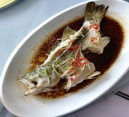 制作方法:鱸魚洗凈。姜、蔥、香菜洗凈,姜切絲,蔥切長段后剖開,香菜切成長段。將魚放入盤內,在魚上放姜絲、蔥段、香菜段,淋上醬油、料酒,放適量鹽,將盤入鍋,加水,放在火上蒸8分鐘左右。