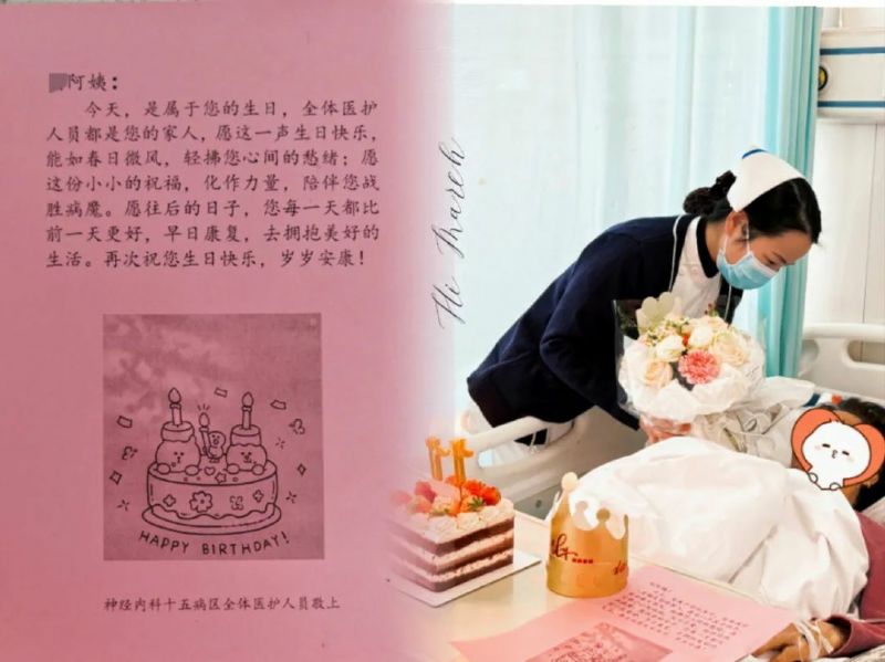 護(hù)士深知患者此刻對家的渴望與對生日的期盼,立刻將情況上報給護(hù)士長。護(hù)士長聽聞,沒有絲毫猶豫,自掏腰包訂下精致的生日蛋糕,還精心挑選了一束鮮花,寓意著生機與希望,醫(yī)生護(hù)士們寫下祝福賀卡,希望能為劉阿姨黯淡的病房時光增添一抹亮色。