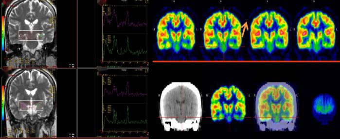 25歲,男,癲癇反復(fù)發(fā)作 MRS:雙側(cè)海馬區(qū)NAA降低,提示:神經(jīng)元缺失;PET顯像提示:左側(cè)顳葉代謝減低,手術(shù)切除,術(shù)后病理提示符合局部腦組織缺氧病理改變,術(shù)后患者明顯好轉(zhuǎn)。