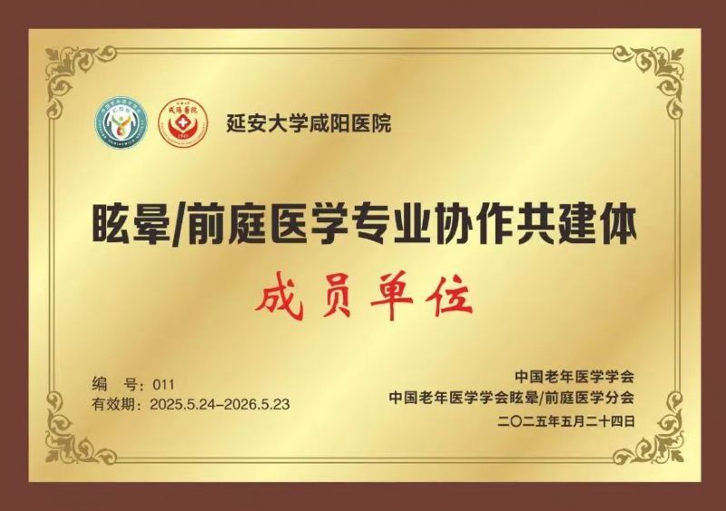 延安大學(xué)咸陽醫(yī)院喜獲中國(guó)老年醫(yī)學(xué)學(xué)會(huì)眩暈/前庭醫(yī)學(xué)專業(yè)協(xié)作共建體成員單位