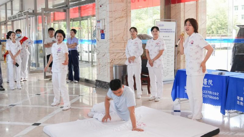 在“老年人跌倒后如何自救”環(huán)節(jié),魏薇、鄭思明兩位老師結(jié)合模擬場(chǎng)景,詳盡闡述了跌倒后的正確處理步驟。她們強(qiáng)調(diào),跌倒后切忌貿(mào)然起身,應(yīng)首先評(píng)估傷情,緩緩活動(dòng)四肢,確認(rèn)無劇烈疼痛后,再借助穩(wěn)固的家具或呼救輔助起身。若無法移動(dòng),應(yīng)保持體位,及時(shí)撥打急救電話或?qū)で笏嗽@夏赆t(yī)學(xué)科劉文靜護(hù)士長(zhǎng)現(xiàn)場(chǎng)講解如何利用手機(jī)的緊急呼叫功能和智能手環(huán)的報(bào)警功能等現(xiàn)代科技手段,以提高自救效率。