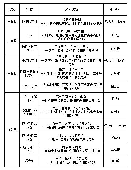 第三屆康復(fù)護(hù)理案例分享獲獎人員名單