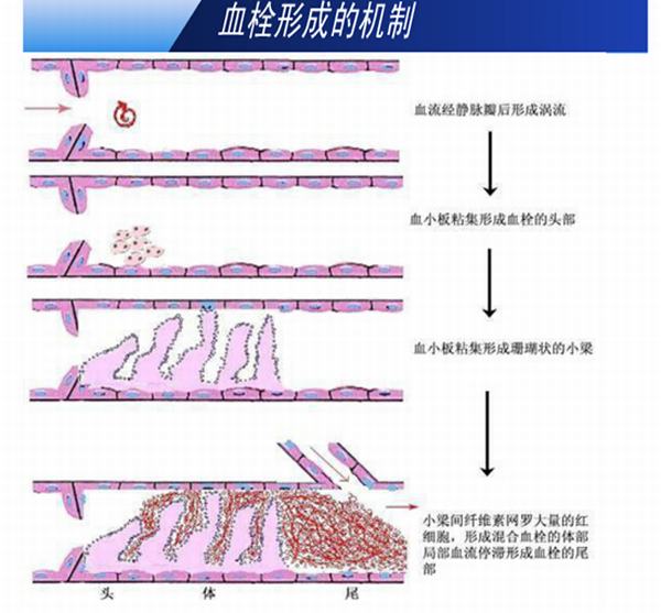簡單的說:綜合上述靜脈血栓形成的病因?yàn)殪o脈血流滯緩和血液高凝狀態(tài)是兩個(gè)主要原因。單一因素尚不能獨(dú)立致病,常常是兩個(gè)或3個(gè)因素的綜合作用造成深靜脈血栓形成。