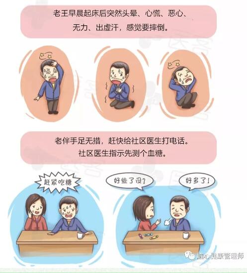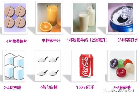 一旦出現(xiàn)低血糖癥狀,有條件的患者應立即測定血糖水平。低血糖的患者應牢記兩個“15”原則。