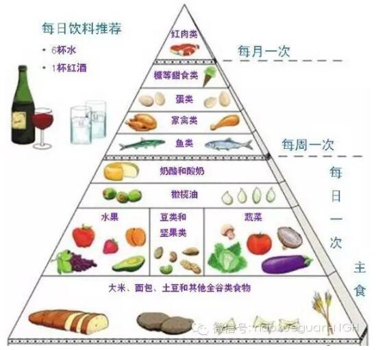 地中海飲食結構--簡單、清淡、富含營養(yǎng)。地中海飲食簡單地講,就是:豐富的谷類、豆類、蔬菜、水果、橄欖油,輔以葡萄酒和魚類。