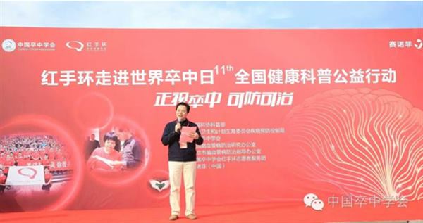 2016年10月29日是第十一個“世界卒中日”,由中國卒中學(xué)會主辦的“紅手環(huán)走進(jìn)世界卒中日”全國健康科普公益活動在北京西山國家森林公園隆重舉行。我院張海濤副院長、神經(jīng)內(nèi)科十三病區(qū)王少君副主任、神經(jīng)內(nèi)科貴賓病區(qū)李直醫(yī)師應(yīng)邀參加了此次活動,同時張海濤副院長作為全國紅手環(huán)志愿單位和志愿者代表在大會上致辭!
